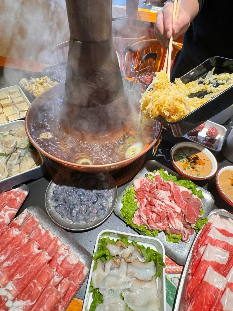 The traditional copper pot enhances the experience, symbolizing the art of “gathering around the stove.”