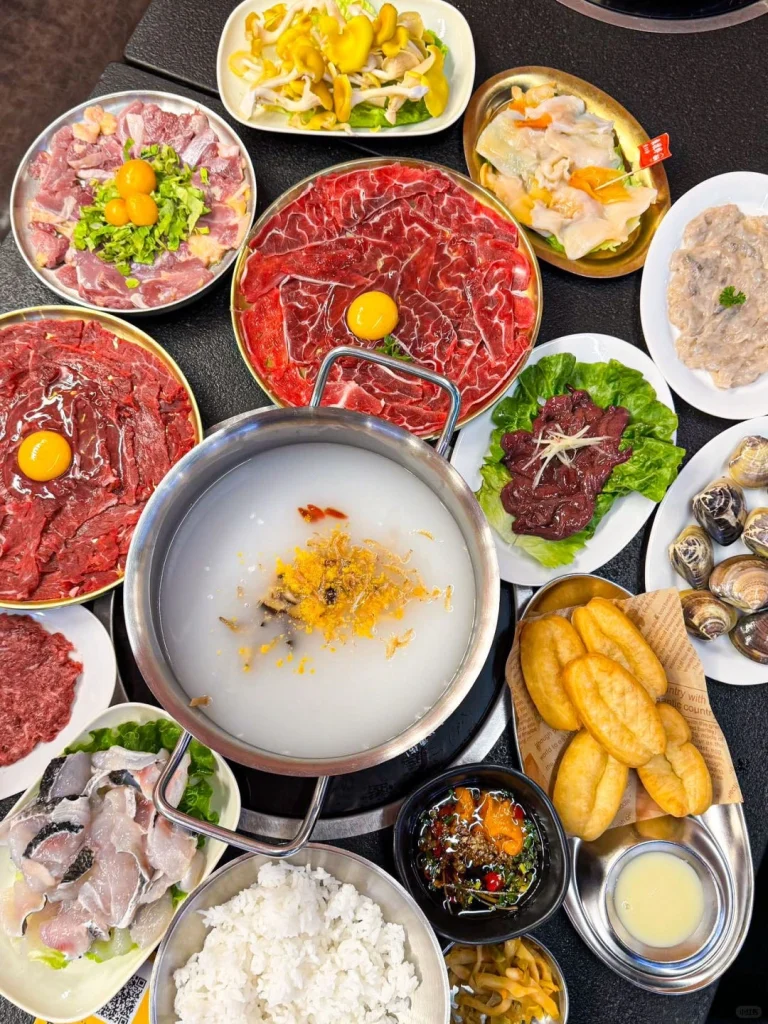 Originating in the Qing Dynasty, this hotpot replaces the traditional broth with congee, using the wisdom of “rice oil locks in freshness” to blend health benefits and deliciousness.