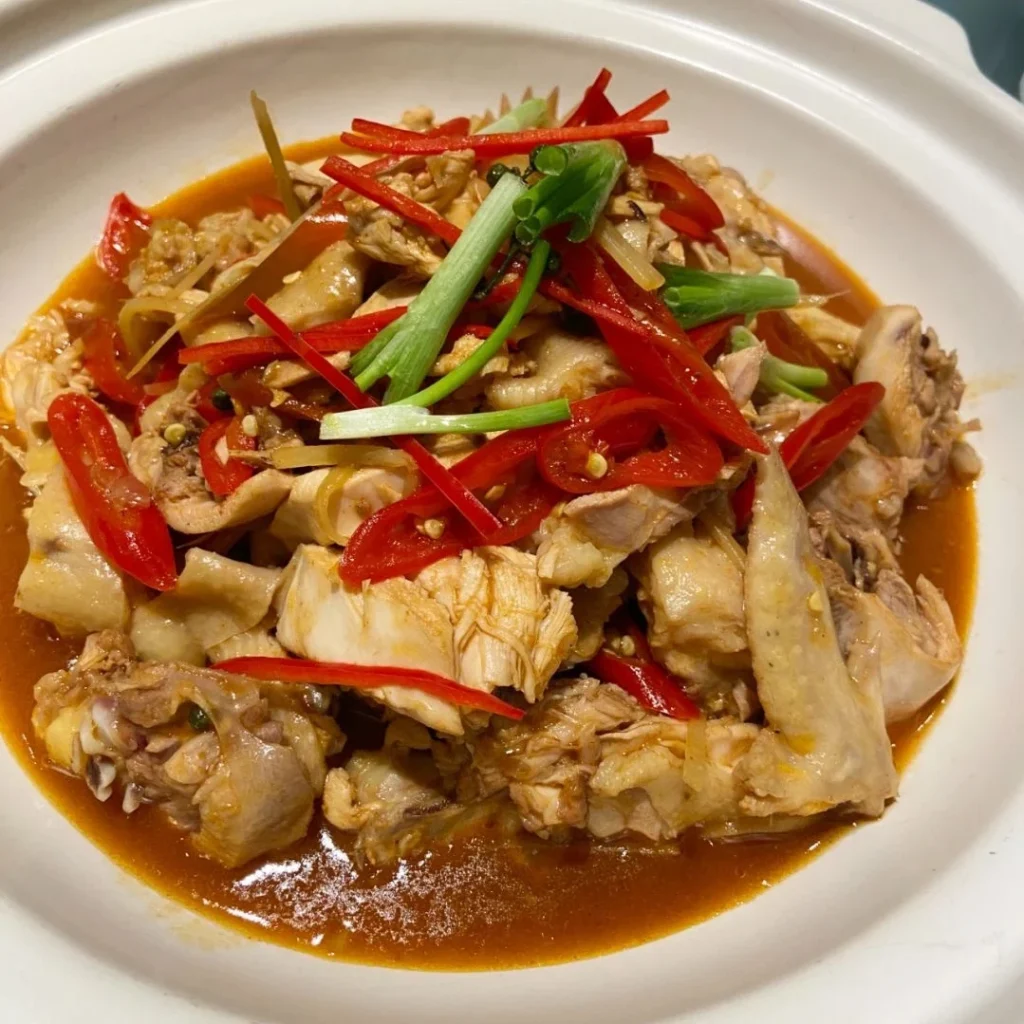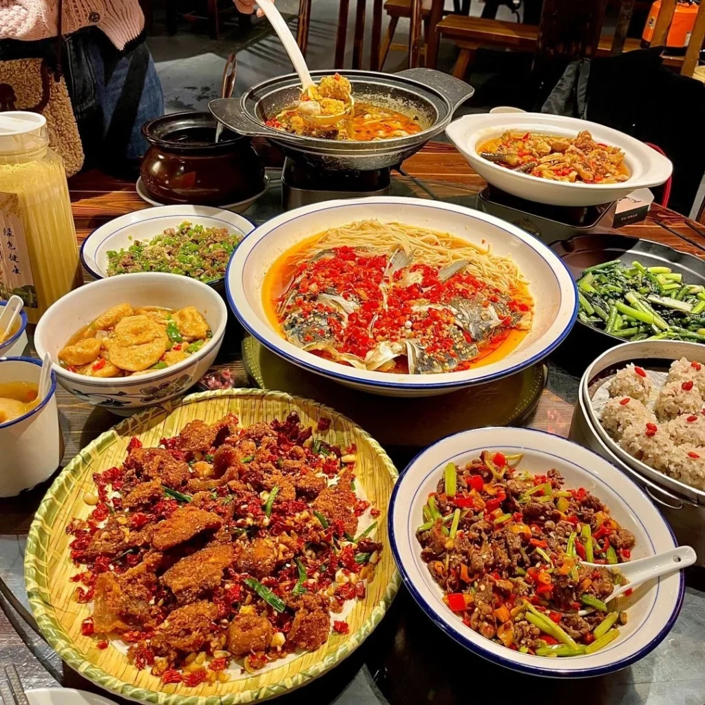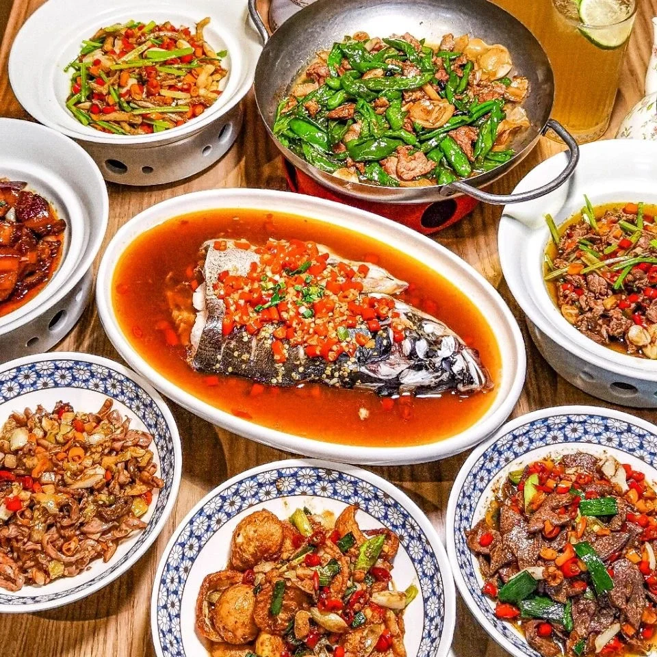Known for its bold, spicy flavors and a variety of cooking techniques, signature dishes include Stir-fried  Pork with Chili, Steamed  Fish Head with Diced Hot Red Peppers, and Dong’an Chicken.