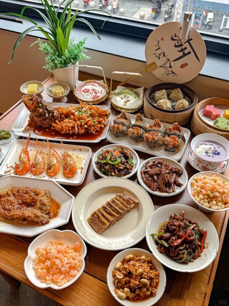 Famous dishes include Jinling roast duck, crystal pork trotter, and steamed crab meat lion’s head.
