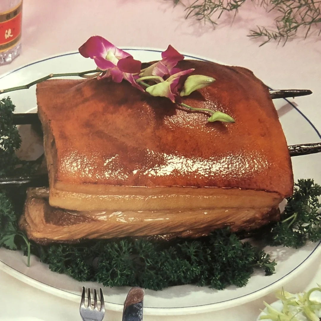 Famous Zhenjiang dish, made from pork leg, featuring translucent meat with a delicate, savory taste.