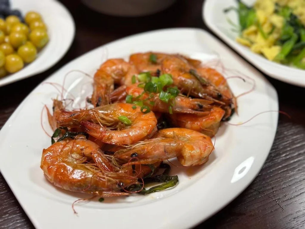 Tiny live river shrimp are deep-fried in hot oil until crispy, then tossed with soy sauce and scallions. The shells are so thin they shatter like glass, while the shrimp inside remains juicy and springy. At Lanxin Restaurant, each shrimp bursts with flavor, and many diners say, “The shells are better than the meat!”