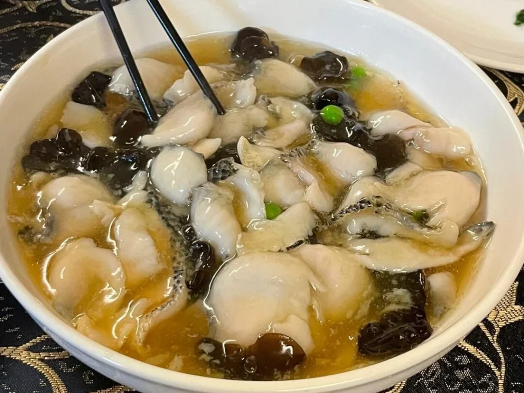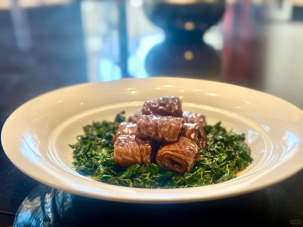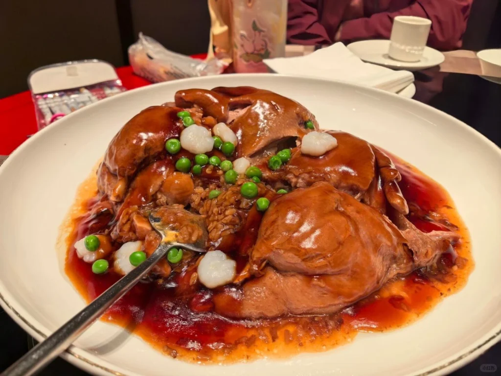 Made from the fatty tail of a blue carp, this dish is slowly braised until the skin turns silky and the meat inside is fork-tender. The tail section is prized for its gelatin-rich texture, giving each bite a sticky, luscious mouthfeel. Guangmingcun’s version is rich, balanced, and full of umami.
