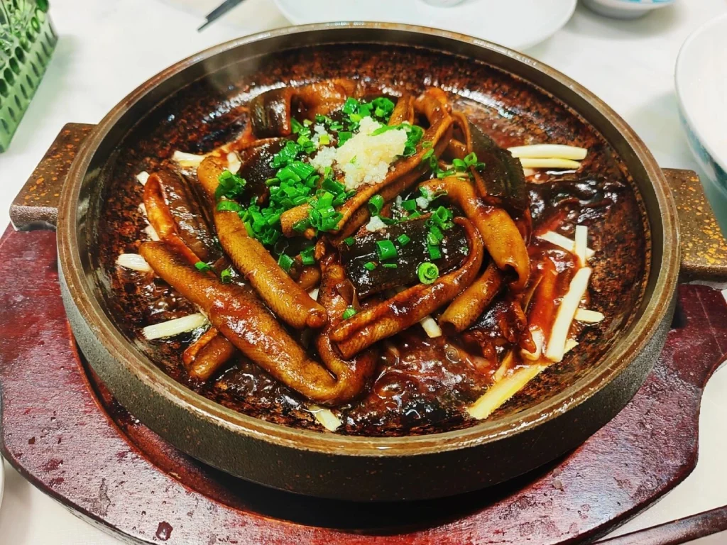 Fresh eel is sliced into fine strips and stir-fried over blazing heat, locking in its tender texture. Just before serving, it’s doused in sizzling oil poured over scallions and pepper, releasing a mouthwatering aroma. At Lao Zhengxing, this dish stays true to tradition—deeply savory, slightly peppery, and full of warmth.